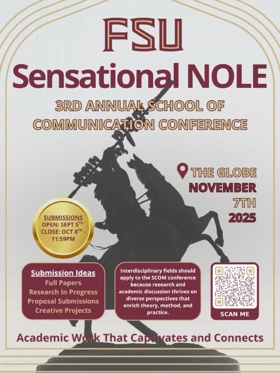 We are thrilled to announce the 2025 School of Communication (SCOM) Conference at Florida State University! This year’s theme, Sensational NOLE, celebrates scholarship that resonates—academically, socially, and personally.